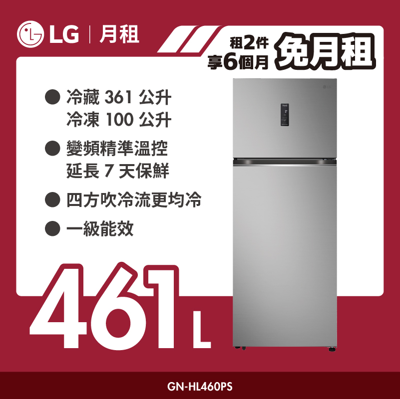 【LG 月租】461L智慧變頻雙門冰箱 星辰銀|GN-HL460PS