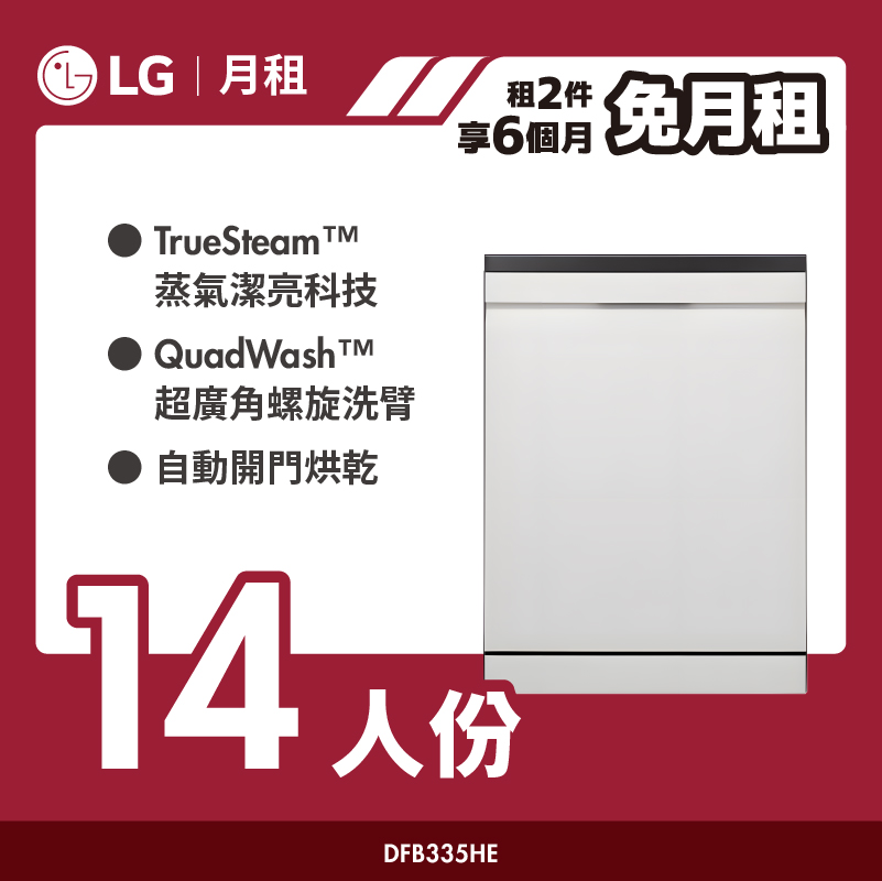 【LG 月租】QuadWash™ Steam 四方洗蒸氣自動開門洗碗機|DFB335HS