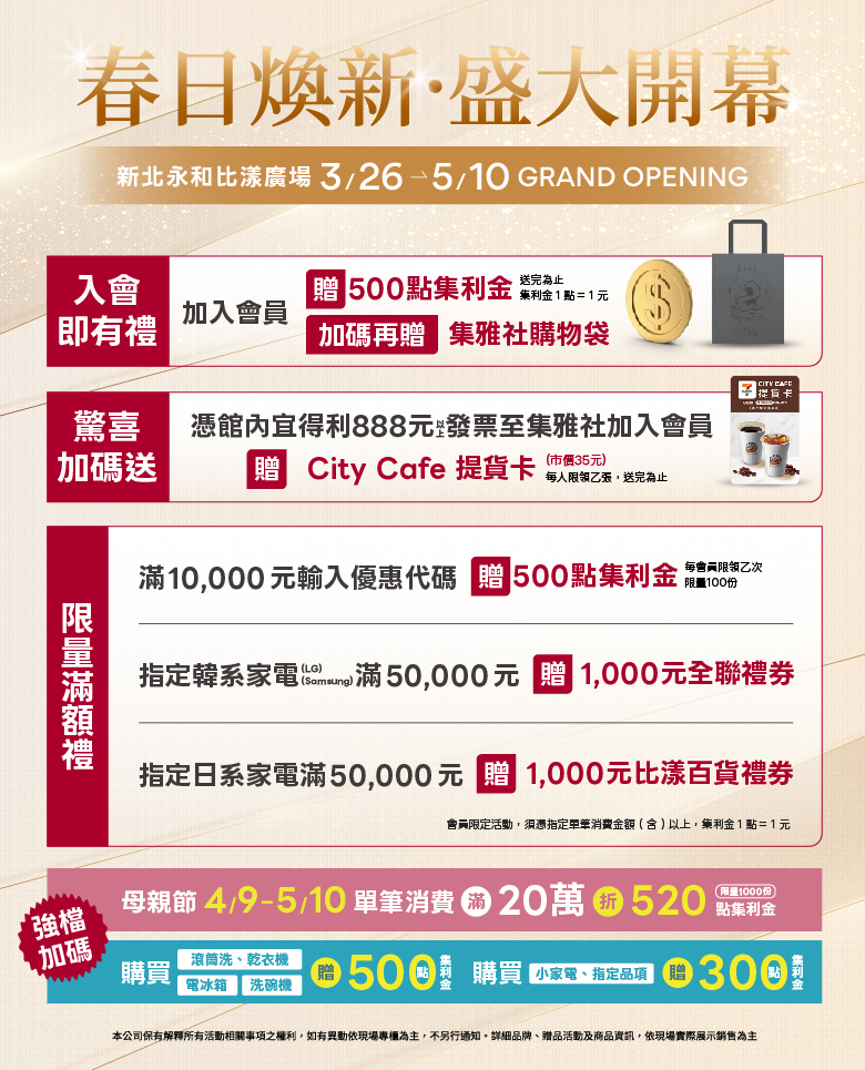 【活動倒數】桃園台茂集雅社家電特賣37折起 日立、三菱電機、Marshall等滿額現折三千再抽紅包