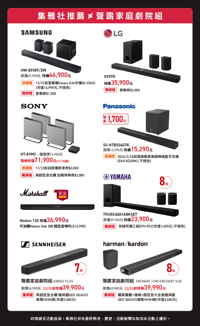 集雅社百貨影音家電銷售領導品牌,家電規劃師提供電視、冰箱、冷氣空調、除濕機、清淨機、掃地機器人、電競螢幕、音響劇院、等全方位的智能家電規劃服務。