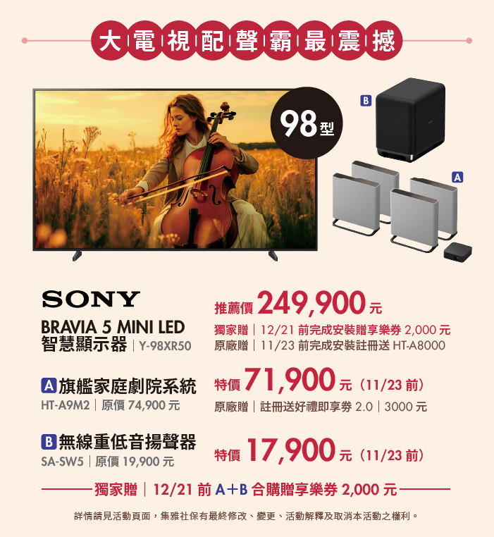 現場設有四大主題專區──大電視搭配聲霸、日韓熱泵洗衣機、沉浸式家電體驗與週週限定活動,讓你一次滿足影音、洗衣與居家需求。把握汰舊換新好時機,升級居家生活品質,就在集雅社歲末出清!