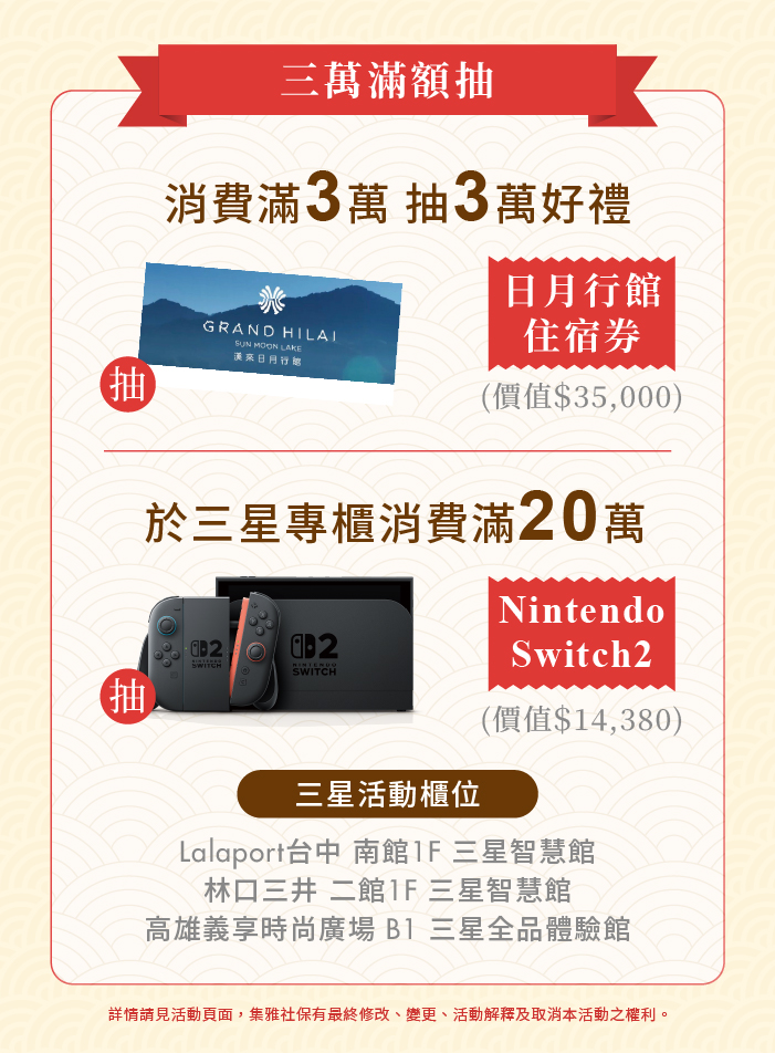 【限定三星智慧館/三星全品體驗館專屬限定|滿 20 萬抽 Switch】