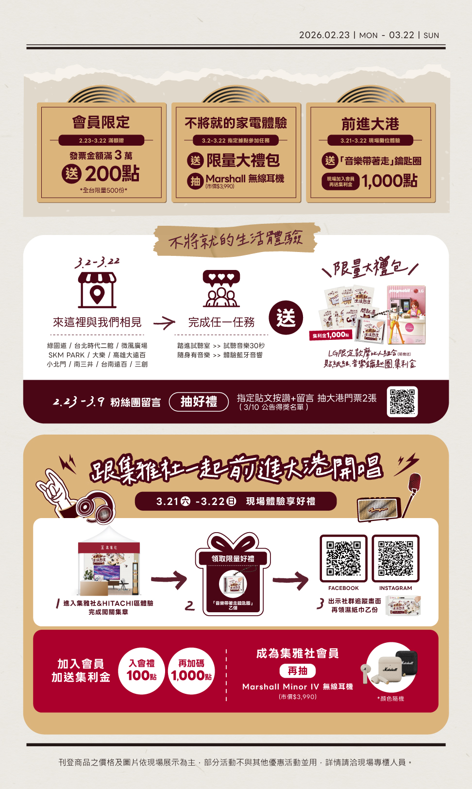 4.現場加入會員送100點集利金另送1,000點集利金再抽Marshall Minor IV無線耳機(市價$3,990)