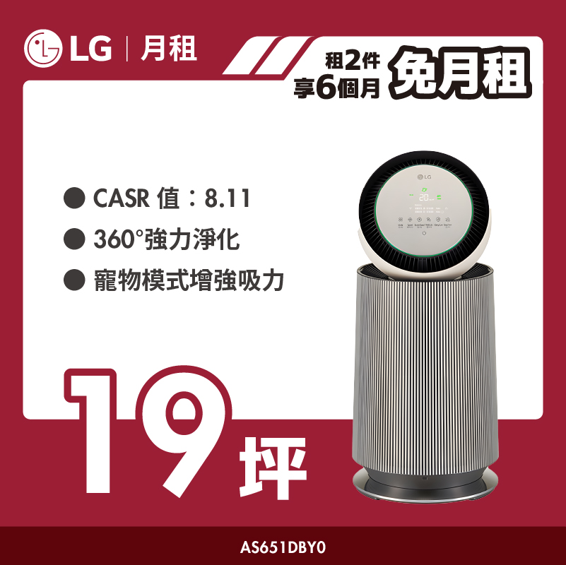 【LG月租】PuriCare™ 360°空氣清淨機 - 寵物功能增加版二代|9坪(單層)|AS651DBY0