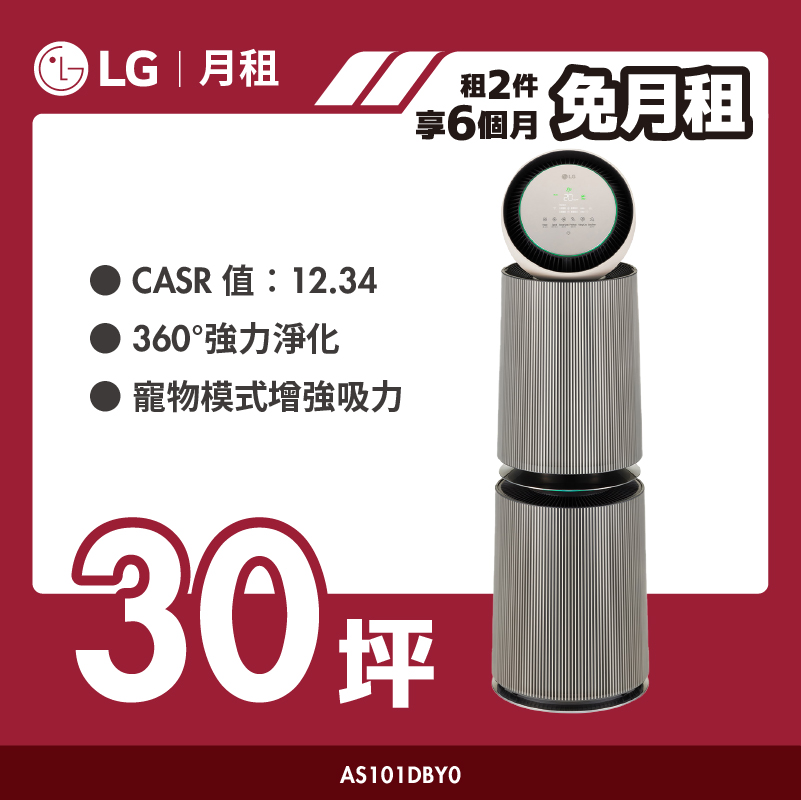 【LG月租】PuriCare™ 360°空氣清淨機 - 寵物功能增加版二代|30坪(雙層)|AS101DBY0