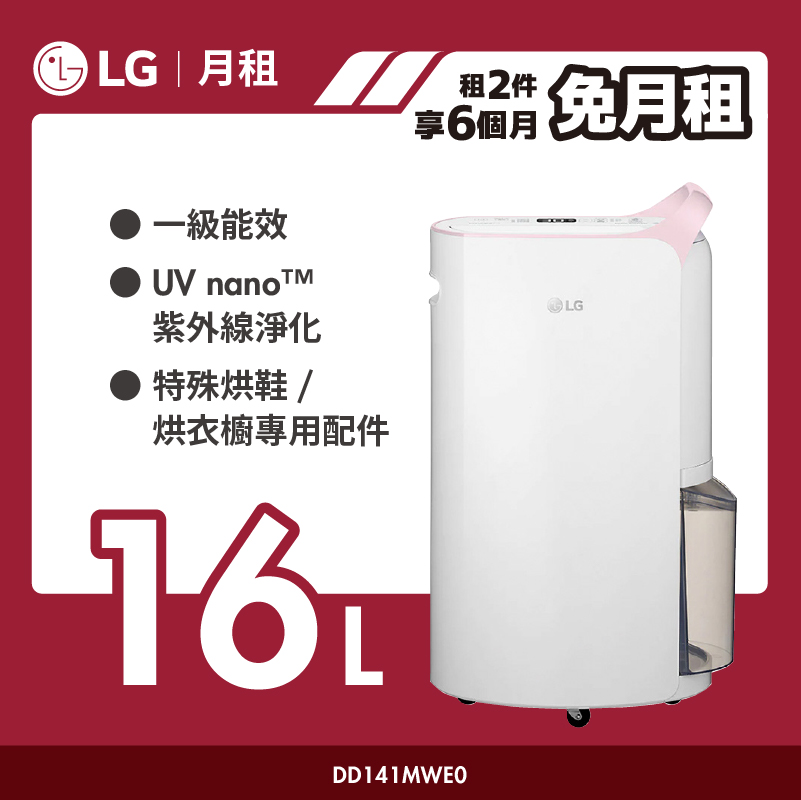 【LG月租】PuriCare™ 雙變頻除濕機 - 16公升(粉紅)|MD161QPE0