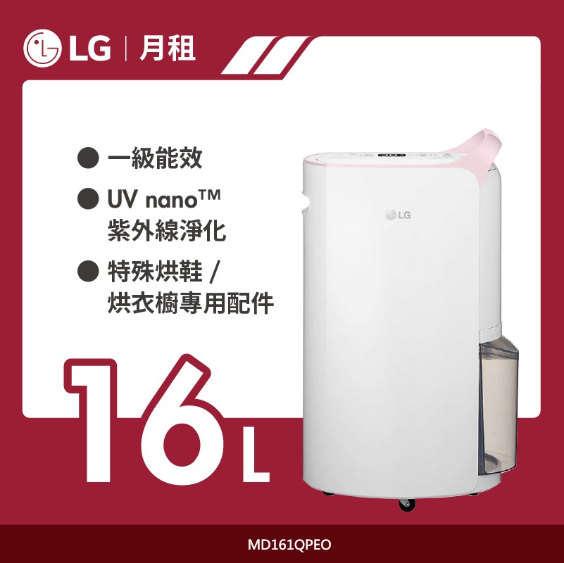 【LG月租】PuriCare™ 雙變頻除濕機 - 16公升(粉紅)|MD161QPE0